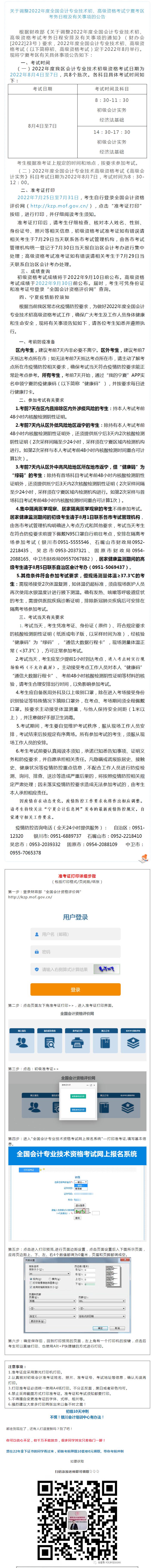 關(guān)于2022年度全國(guó)會(huì)計(jì)專業(yè)技術(shù)中級(jí)資格考試寧夏考區(qū)打印準(zhǔn)考證及其他有關(guān)事項(xiàng)的通知